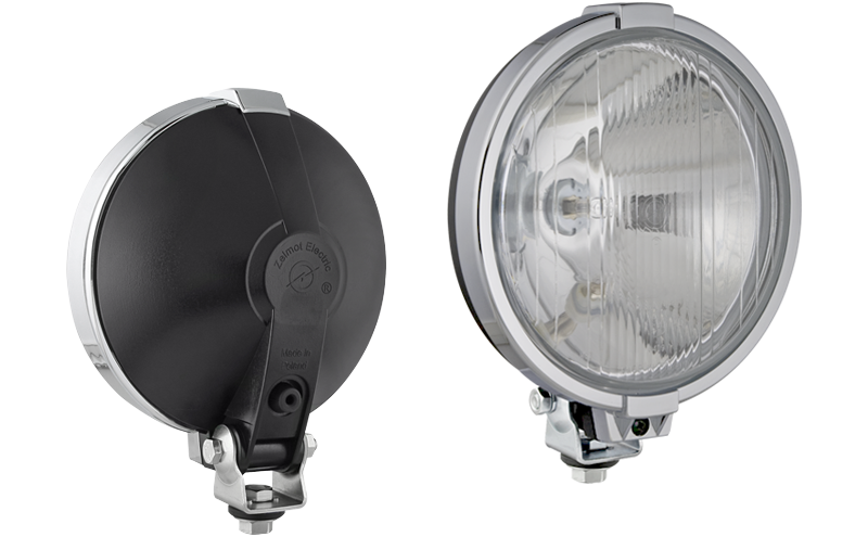 Drogowy reflektor halogenowy z chromowaną ramką i światłem pozycyjnym