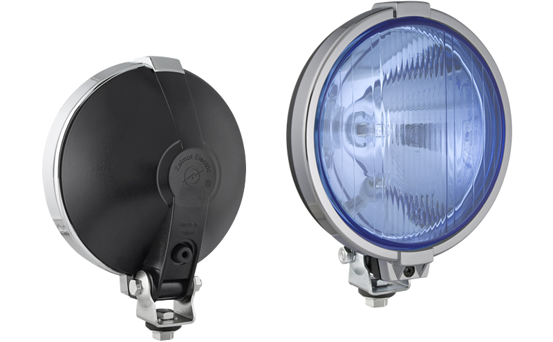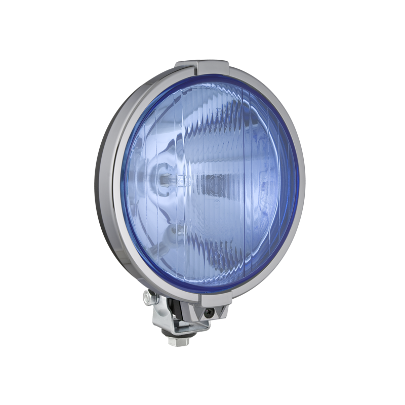 Drogowy reflektor halogenowy z chromowaną ramką i światłem pozycyjnym - błękitny