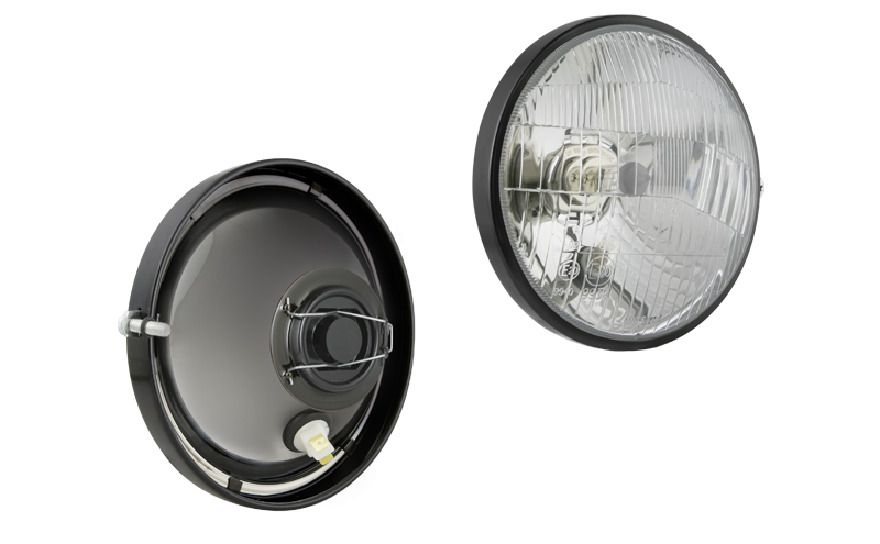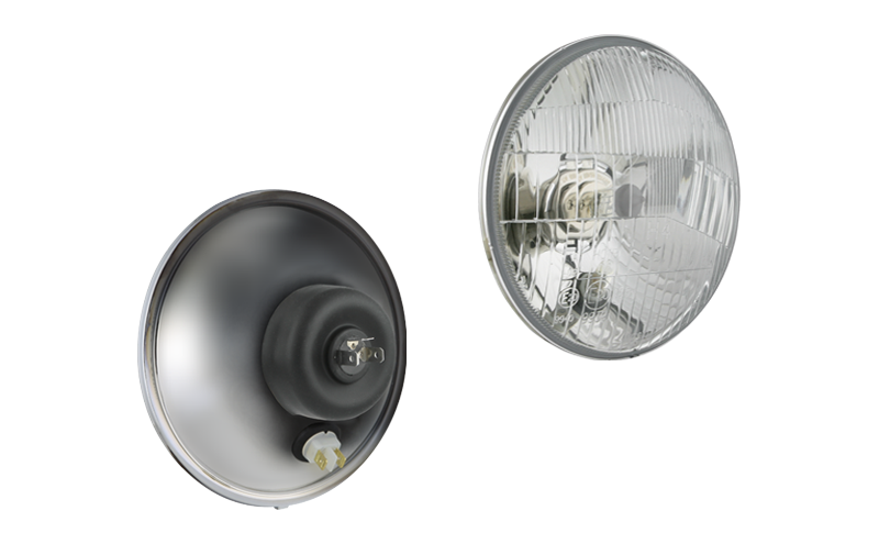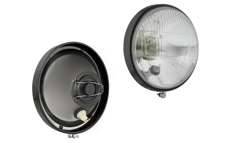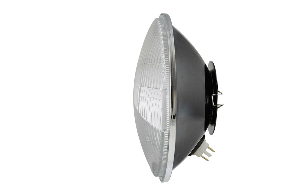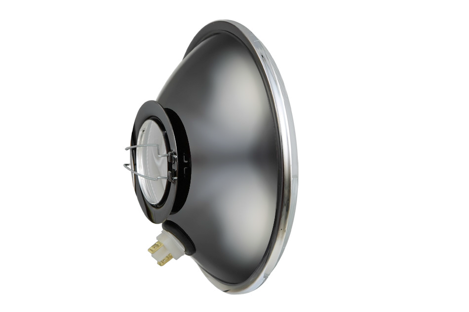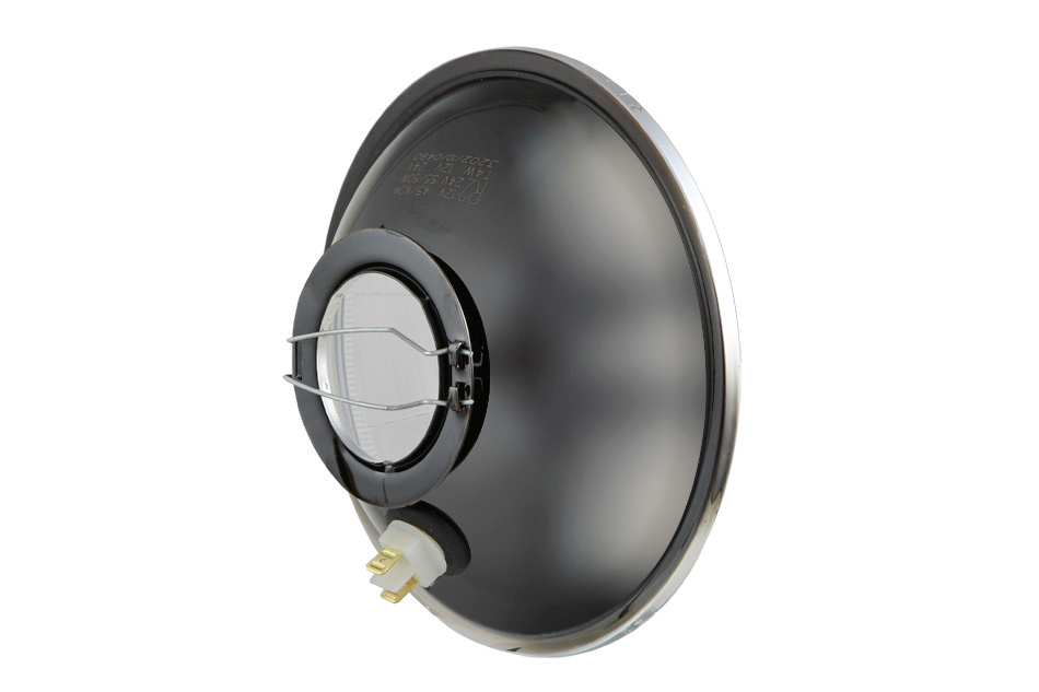 Element optyczny typu H4 z ramką metalową - stojący (światła: mijania, drogowe, pozycyjne)